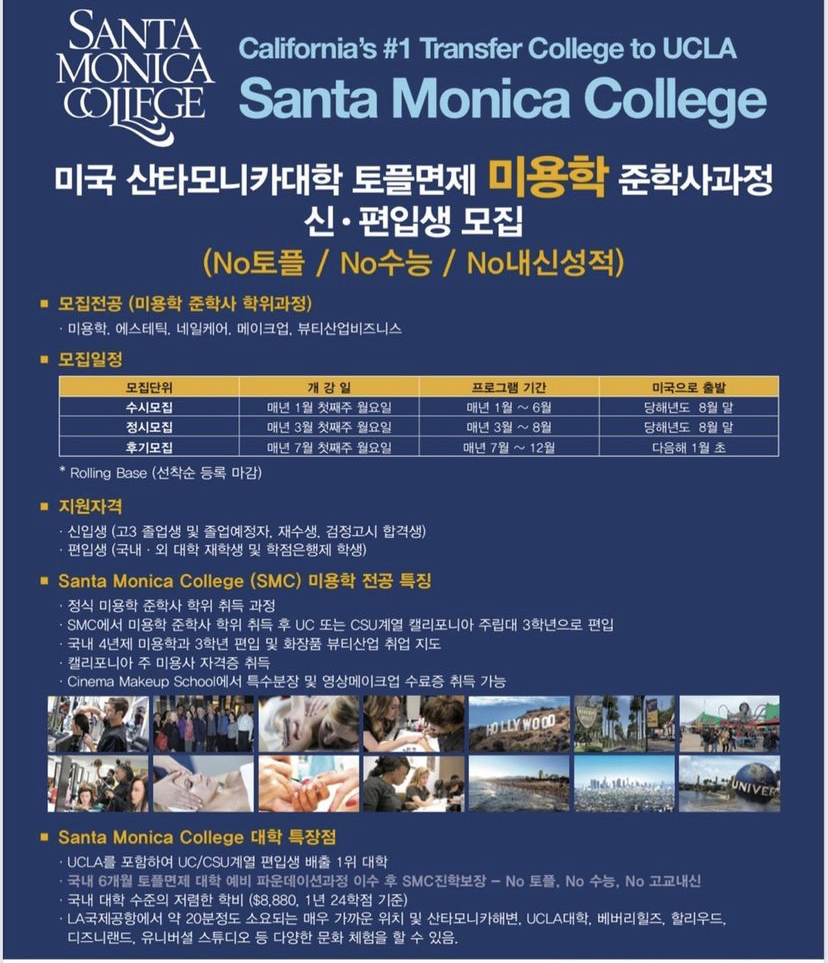 진주미용학원 미국 산타모니카대학 입학상담 진주점(유학상담)